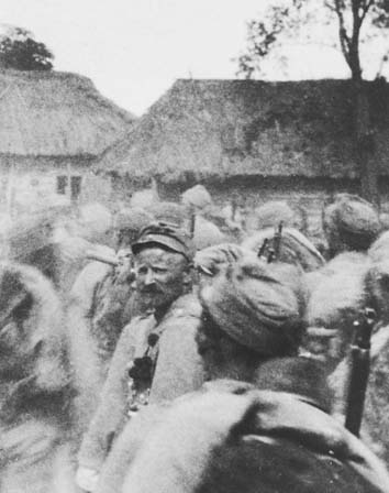 一九一四年八月进入加利西亚某村的奥地利部队。有位奥地利步兵写道,“我们对奥地利这个省一无所知,只知道它产油、盐、污秽、虱子和许多犹太人”。