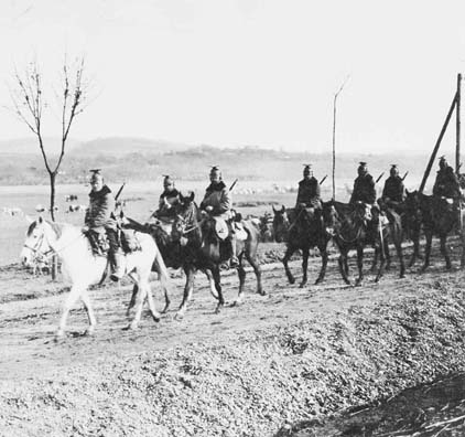 事实表明,绝对落伍的奥匈帝国骑兵与哥萨克人打边界小规模战斗时,只有任人宰割的份,全线溃退,死伤惨重,抱怨身上的装备、盔甲笨重累赘。奥芬贝格得知他的第六骑兵师在托马舒夫(Tomasow)周边溃败之后写道,“什么都缺”。[19]许多奥地利骑兵选用阅兵用的重马鞍,把他们未习惯这种马鞍的坐骑擦伤弄痛,因而被马从马背上摔下来。数千骑兵因此跛着脚徒步走回基地,后面牵着他们因疼痛而退缩不前的马。那些得以顺利前进的骑兵,搜索过四百公里宽的前线,深入俄境一百六十公里,却遭遇出其不意的猛烈齐射火力。有位俄国中尉忆道,战争初期,他那些发狂的乡巴佬士兵会“每个人都朝一个奥地利骑兵发射二十发子弹”,使整个部队在下一次补给到达之前形同失去武装。[20]