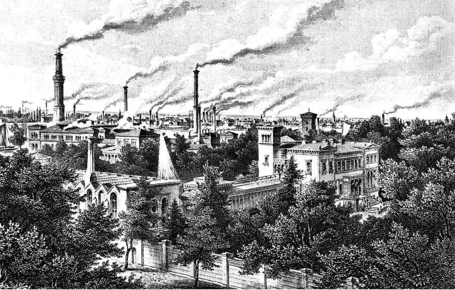 图22 1855年,在柏林莫阿比特的波尔西克(Borsig)公司机车生产工厂。柏林州立档案馆州立图片资料室藏。