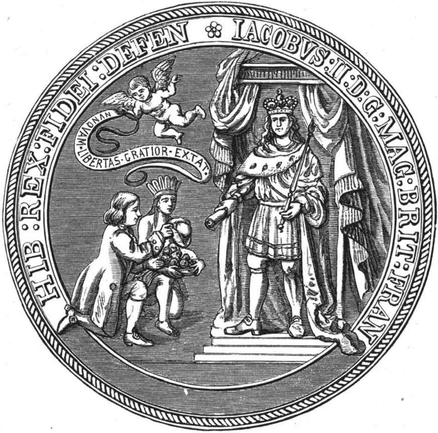 图13 新英格兰自治领(1686—1689年)印章。出自威廉·卡伦·布赖恩特和悉尼·霍华德·盖伊《美国通史》第三卷(1879年)第9页。由美国国会图书馆和美国外交中心友情提供,详情访问http://diplomacy.state.gov/exhibitions/100935.htm。