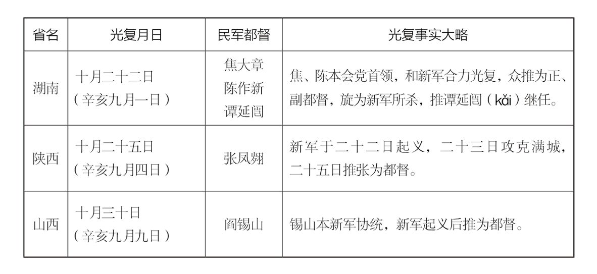 以上都是辛亥年中独立的。惟甘肃至民国元年一月七日,新疆至一月八日,方才独立。其直隶、河南、吉林、黑龙江四省,则未能宣布独立。