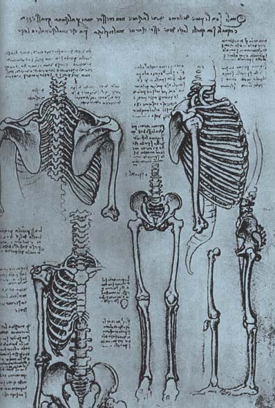 从达·芬奇的笔记中不难看出,他对人类结构构造方面有非常细致入微的观察,并能忠实地记录,所以,由生理学,他又将触角延伸到了工程学和物理学。