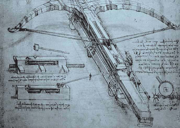 事实上,只要是和机械设计有关的东西,达·芬奇都非常痴迷。在他被发现的6000多页手稿中,人们看到了他设计的水下呼吸装置、拉动装置、发条传动装置、滚珠装置、反向螺旋、差动螺旋、风速计、陀螺仪甚至机械车的设计图……