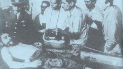 格瓦拉的遗体。阿尔赛为图中脖子上挂有相机者