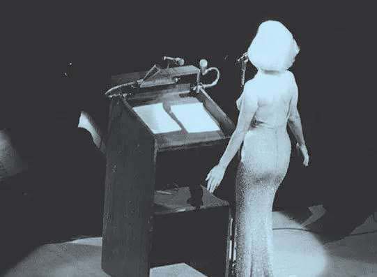 梦露穿着“肯尼迪装”,在那一晚为肯尼迪演唱了那首著名的《总统,祝你生日快乐》