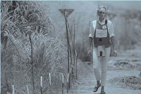 戴安娜在安哥拉的雷区步行,呼吁禁止地雷