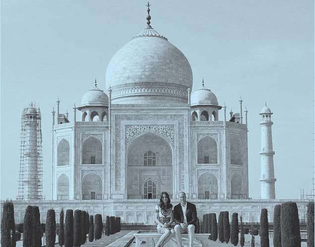 来看第三张照片吧。2016年,威廉王子出访印度,再一次来到了泰姬陵。他在自己父母当初拍照的地方,留下了同样背景的照片。但与他父母不同的是,他身边坐着自己心爱的妻子凯特王妃。