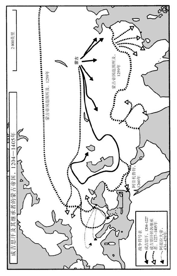 然而,蒙古人的锋芒所向先是中国,不是印度,因为他们就住在中国的边上。自从中国在公元前第一个千年的秦朝实现统一之后,历代王朝就一直不胜黄河以北各族胡人的袭扰,甚至有时被他们夺得大统。为抵外侮,历朝历代建立起一套双重的制度。首先建造长城以为华夷之隔,并借边民之力防卫关内的土地;长城成形于秦朝,后又多次重建、改建和扩建,边民通过与中国的商人、官员和兵士的接触不可避免地多多少少受到了一些汉化影响,朝廷也经常奖赏他们的效力,如给他们提供保护或补贴,或赏赐土地(有时是长城以内的土地)。万一这条主要防线被突破,第二重防卫就是依靠高度发达的中华文明逐渐吸引同化侵略者。作为这一政策基础的“一系列假设都认定中华制度和文化高级优秀,为蛮族所深为仰慕;从未设想过蛮族也许不需要中华文化”。