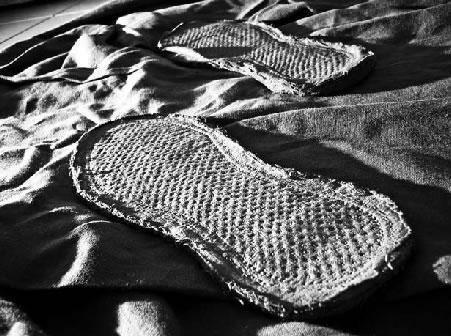 【图:在客厅里,爸爸把我们叫到他跟前,手里拿着那双布鞋底,走过大江大海大离乱,布的颜色,已经是一种苍凉的黄色。】