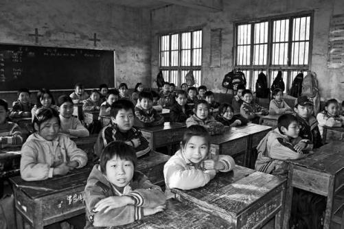 【图:百叶小学,一班四十个孩子,坐在墙壁斑驳的教室里,清清朗朗地念出「陈情表」。】