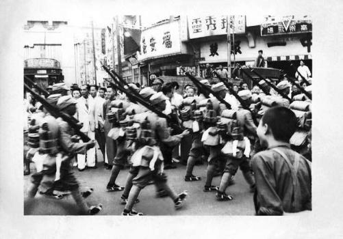 码头上有几节过时的火车厢横在一边;一边则是争先恐后登岸的官兵,口号声喊成一片,队伍挤在一起,很混乱。尤其是辎重部队……相互争道,抢把枪械运上火车,更是叫喊谩骂、喧闹杂乱。这些行动所构成的图景,完全不像是支训练有素、军容严整之师在作光复国土之旅。[90]