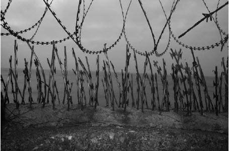 【图:我踏上岛丘的岩石,整个岛挖空了,地底下全是战壕,满山都是防伞兵降落的装置,连观音庙和妈祖庙都涂上了陆战队的草绿迷彩,被重重铁丝网围绕】