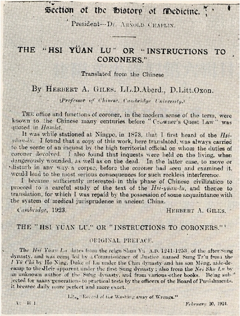 《洗冤集录》出版不久即被宋理宗皇帝钦颁天下,成为全国审案官员案头必备之书。宋亡后,《洗冤集录》仍受到元朝皇帝重视,元刻本书前印有元朝的《圣朝颁降新例》,并将宋慈《洗冤集录序》手迹完整地保存下来,弥足珍贵。