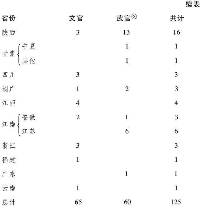 | 地区 | 文官 | 武官 | 共计 |