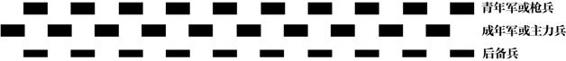 ◎ 罗马起初四大军团的徽标。狼、野猪、公牛和骏马是罗马共和国初期的象征,并被用来作为军团鹰旗的徽标。图中1234为城市军团的旗手,5为青年兵步兵中队的中队旗手。