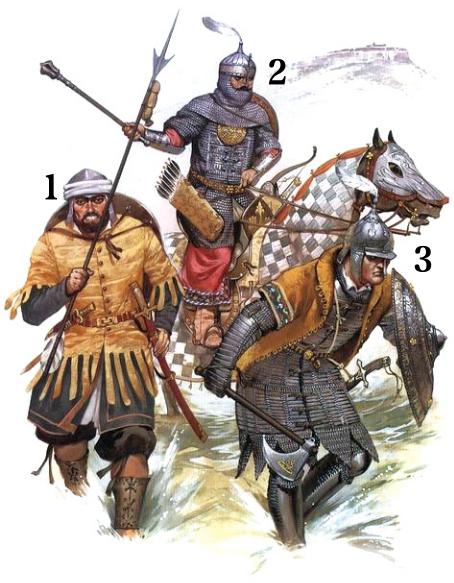 ◎ 1为奥斯曼的巴尔干步兵,2为奥斯曼西帕希重骑兵,3为奥斯曼重步兵。