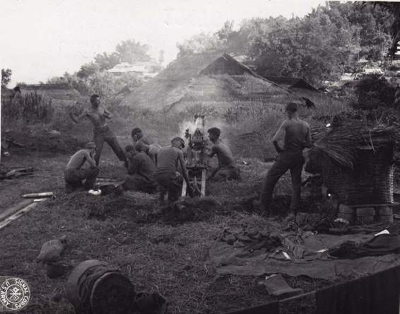 图为第612野战炮兵部队”A”炮兵连,使用75毫米轻型榴弹炮从南坎向缅甸公路开火。