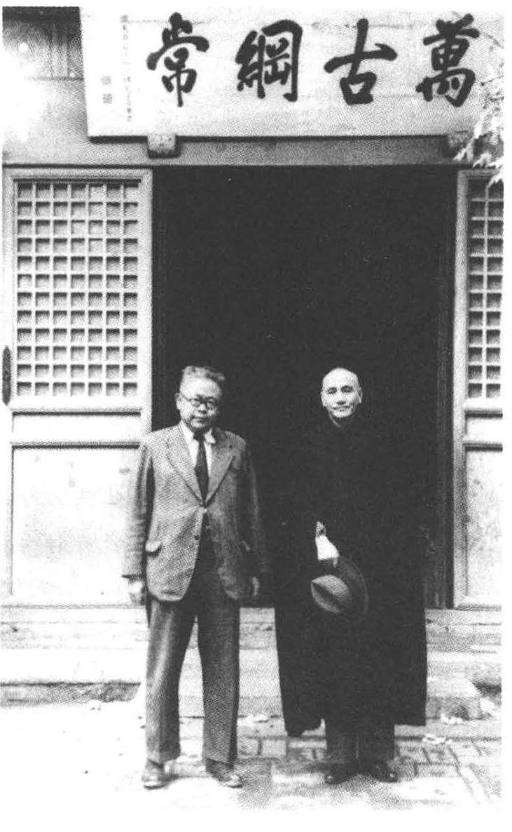 1946年春,蒋介石与傅斯年在北平文丞相祠合影。