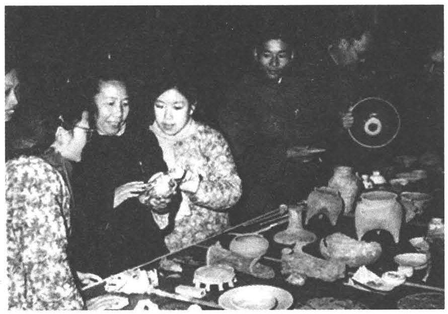 曾昭燏在南京博物院库房向工作人员讲解文物知识。
