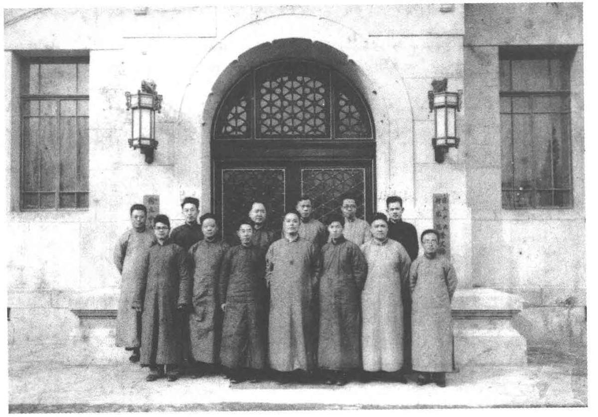 1936年2月24日,考古组同人在南京北极阁史语所大楼前的合影。后排右起:胡厚宣、李光宇、高去寻、李济、梁思永、徐中舒;前排左起:王湘、董作宾、石璋如、郭宝钧、刘耀(尹达)、李景聃、祁延霈。