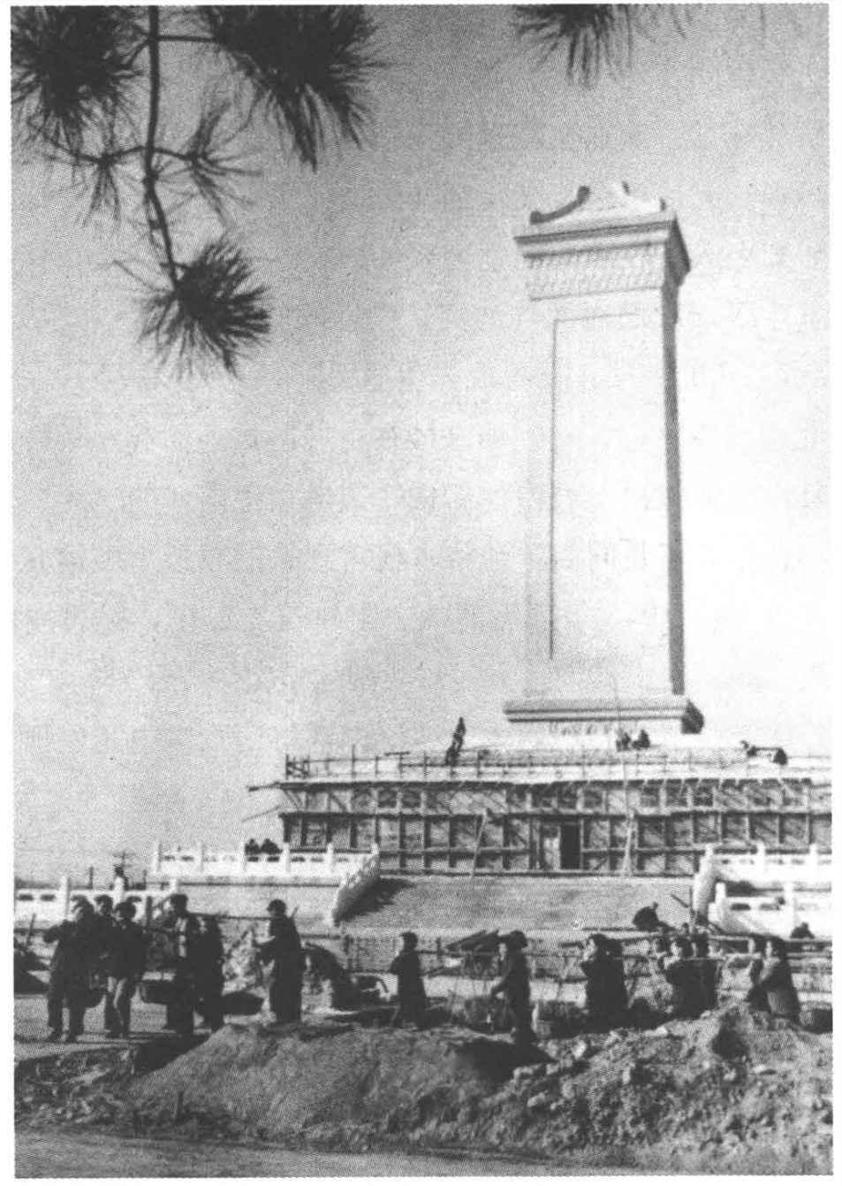 由梁思成参与设计的“人民英雄纪念碑”的建筑工地。