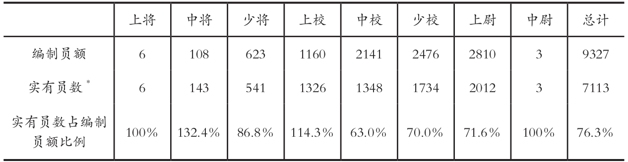资料来源:军令部第三厅第一处:《廿九年全国各级参谋编制员额与实有员数比较图》,档号769/309,军令部档案。