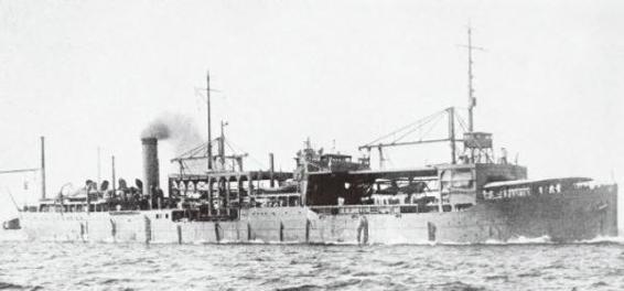 武汉战役中的日军神威号水上飞机母舰,排水量17,000吨,曾活跃于对华侵略的战场,1945年被中美联合空军重伤坐沉于香港。