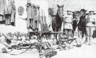 图片三,是缴获日军的机枪。正中的就是92式重机枪,旁边的日军轻机枪,应该是著名的歪把子了。如果仔细看,还可以在画面中找到日军独特的89式重掷弹筒的影子。