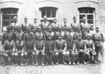 在山东作战期间的日独混第五旅团19大对第1中队部分成员,中排左侧第3人即桑岛。
