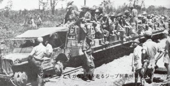 远征军发明的用吉普车拖运的“缅北吉普列车”