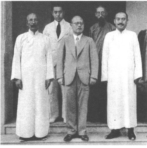 日军也派出代表虚与委蛇。这是穿中国服装的日军谈判人员,中间为特务机关长松井,右边为日军驻二十九军顾问樱井。