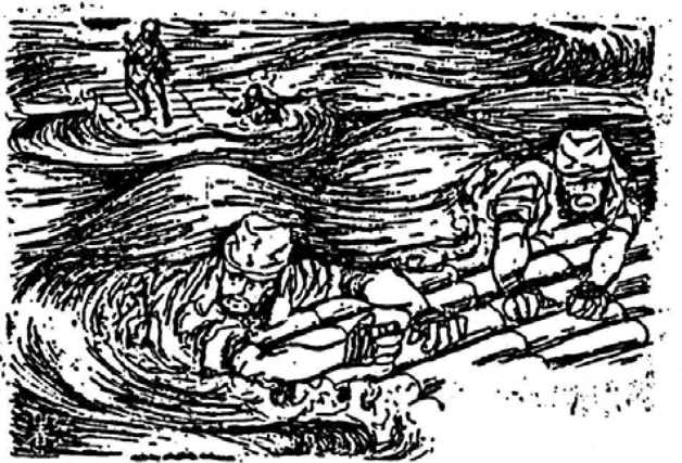 平井郁郎大尉是走在最后的少数人员之一,他本来负责携带全部花名册,奉命在部队“全灭”的时候,负责向总部报告战败经过。但是,密支那守军选择突围让他的使命失去了意义。因此,8月3日晚,他被派往城北通知失去联络的松木正信小队撤离阵地。一路上,路边都是被炮弹打倒的树木、残垣,平井需要不断避开飞来的炮弹,多次迷路,只能依据枪声定位寻找目标。当初风景秀丽的密支那已经不知去向。费尽辛苦完成任务之后,回到守备队司令部的平井发现此地已经空无一人——司令部撤退的时间定在当晚10时,此时已经是12时,该处人员早已撤往河边。赶到伊洛瓦底江边的平井发现这里一片混乱。他在堤岸的旁边发现一个竹筏,十余名日军正在那里张望。丸山大佐也在竹筏上,看到平井,喊了一声:“快点儿上来。”平井还在按照礼节在水边行礼报告:“我回来了……”得到的回答依然是不耐烦的“快点儿上来”,他这才发现丸山似乎没有心情听他的汇报。平井上筏的时候引发了剧烈的晃动,缅甸船夫连忙用力撑住筏子,但丸山依然是一副活死人的模样,筏子上面的人皆是无言。