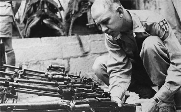 一名云南前线的美军顾问在检查远征军缴获的日军轻机枪。注意其袖标,代表的是滇缅战区。