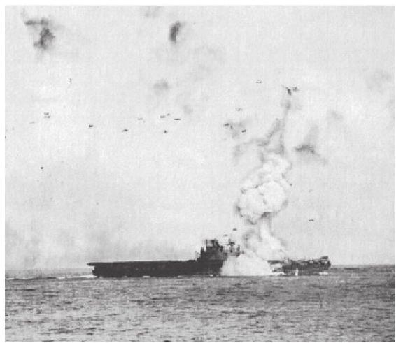 应该说,用飞机撞击船舶,并不是日本人的专利。美军飞行员有时也会这么做,当然是在极少数情况下,例如飞行员受了伤,或是飞机已经毁坏的时候。中途岛战役中,美军就有过好几个这方面的例子。